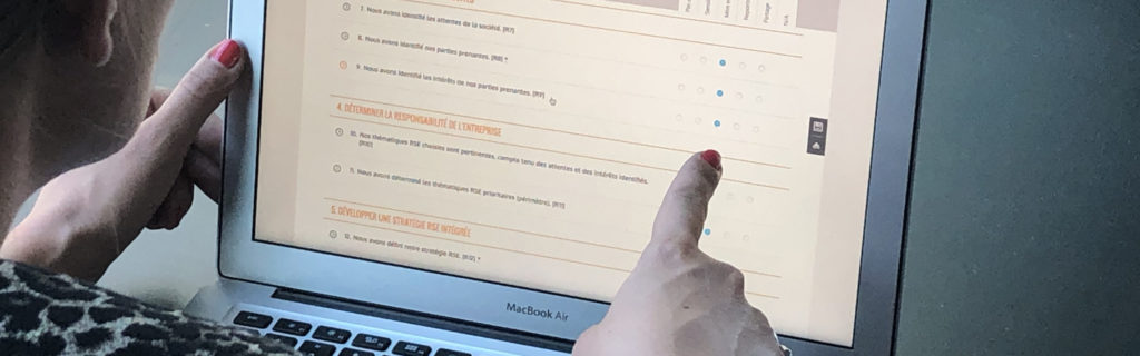 Le Référentiel ESR – ENTREPRISE RESPONSABLE (www.esr.lu) est constitué de plus de 120 thématiques RSE, reflétant les principales actions de la société envers les entreprises quant au développement durable. Il permet à chaque entreprise de s’autoévaluer, indépendamment de sa taille ou de son secteur d’activité. Évaluer votre responsabilité ou niveau de RSE revient à situer le comportement actuel de votre entreprise par rapport à chacune des thématiques présentées.