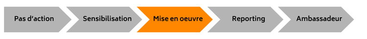 L’INDR recommande à chaque entreprise d’atteindre au minimum le niveau Mise en œuvre pour toutes les thématiques RSE. Le niveau Ambassadeur est le niveau à atteindre uniquement pour les problématiques RSE identifiées comme matérielles, c.-à-d. qui sont jugées particulièrement importantes et pertinentes pour votre secteur ou activité.