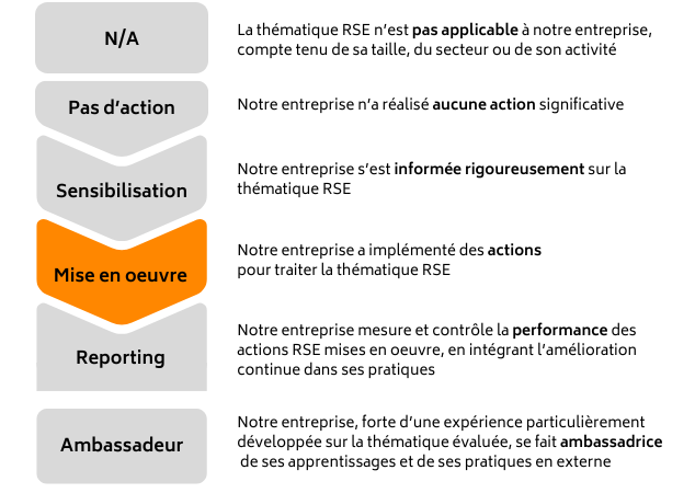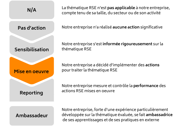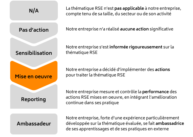 Les niveaux de maturité permettent de mesurer l’engagement RSE de votre entreprise pour chacune des thématique RSE: